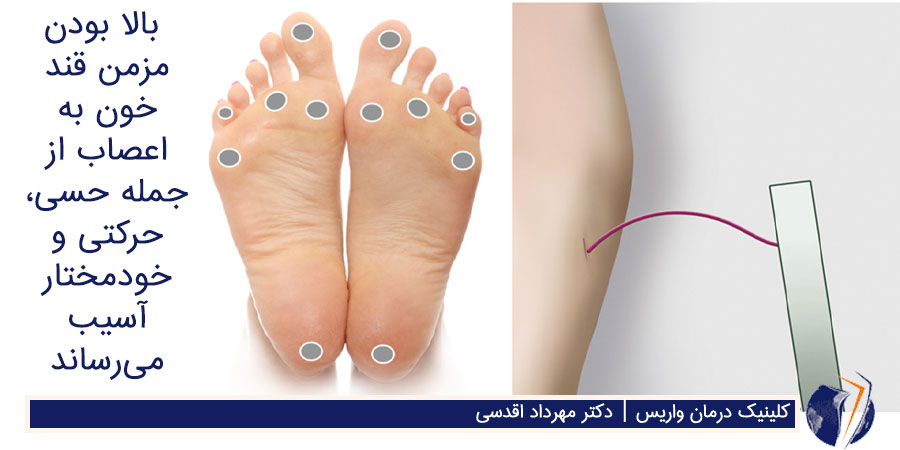 عوارض بیماری دیابت که موجب تأخیر در ترمیم زخم های بدن این بیماران و عفونت آن میشود عبارتند از: